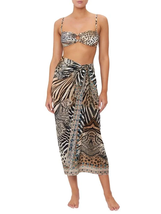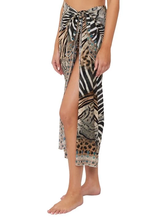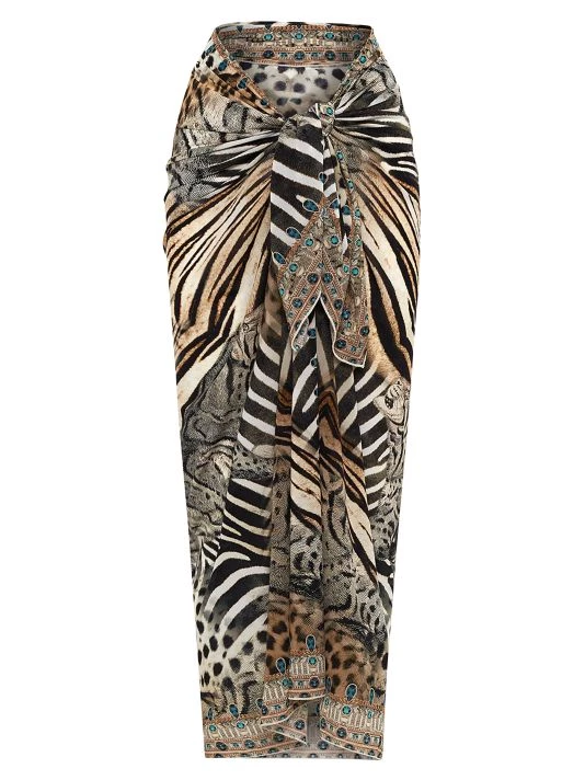 This long, tie-front sarong from CAMILLA features a bold animal print with a contrast border.
