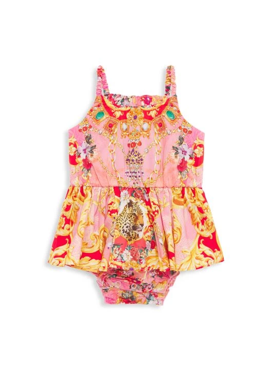 From The Party Like Collection. A bold ornate print featuring striking felines and vibrant florals covers this stylish cotton dress.