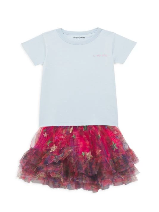 From the Party Like Collection. This tie-dye tutu-style skirt features glitter star details and a vibrant leopard print waistband.