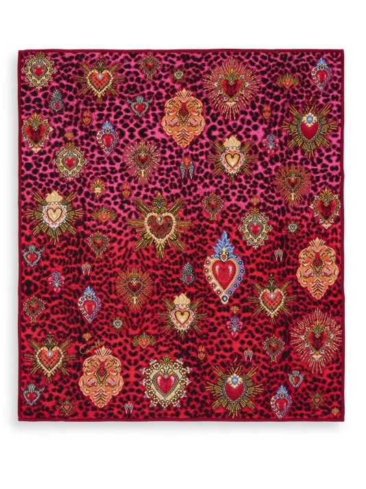 Crafted of soft cotton, this jacquard blanket showcases a leopard and hearts print.