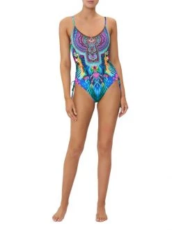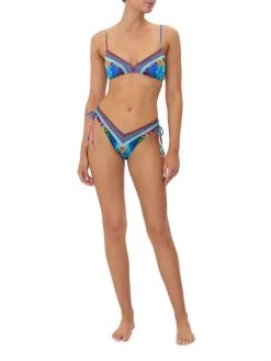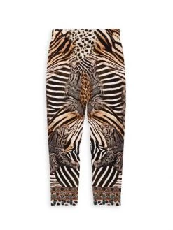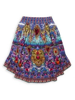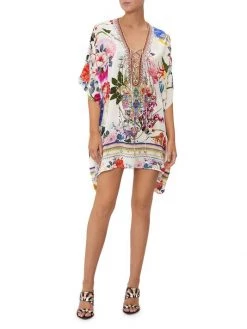 A sheer, chiffon cape overlay tops this intricately-printed silk blouse.
