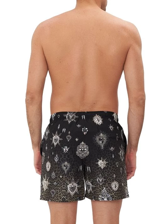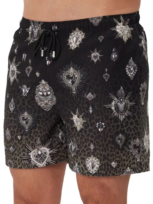 These woven boardshorts with an elasticated waistband feature an ombré-effect leopard print and crystalized heart-shaped motifs.