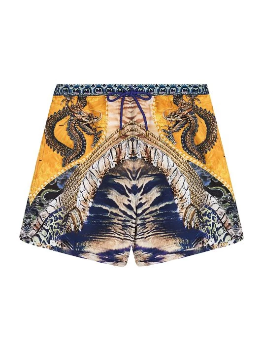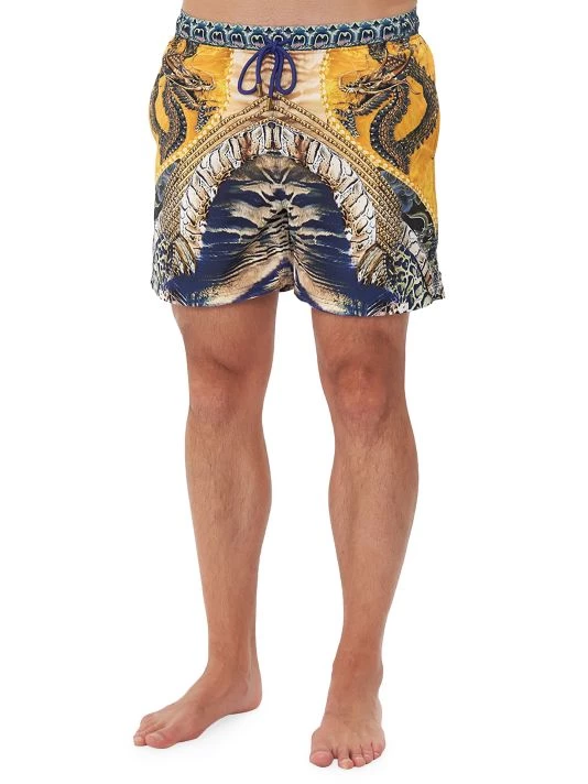 These woven boardshorts are adorned with a mirror-effect dragon-inspired print.