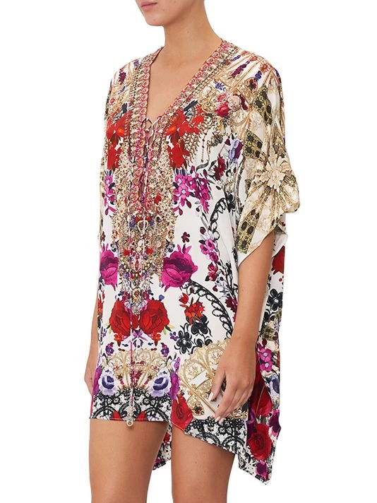 Crafted of luxe silk, CAMILLA’s caftan is adorned with a vibrant floral print and a lace-up front.