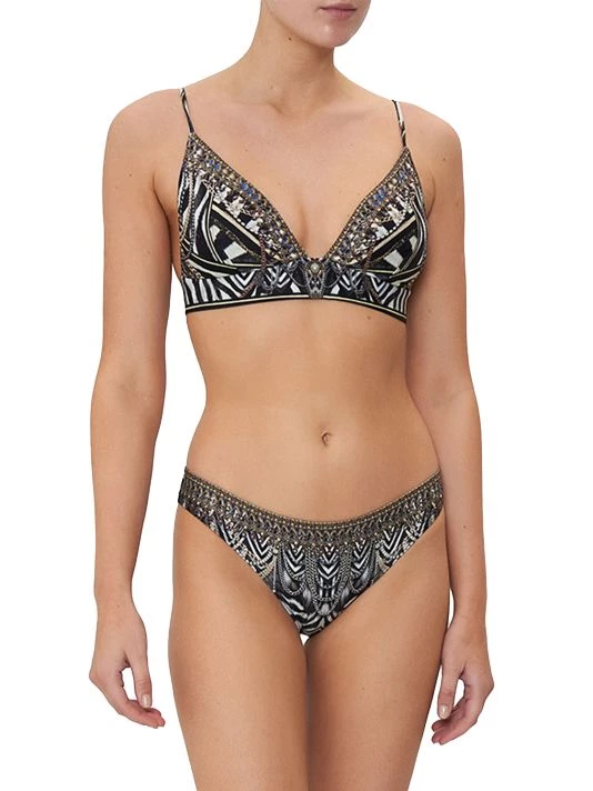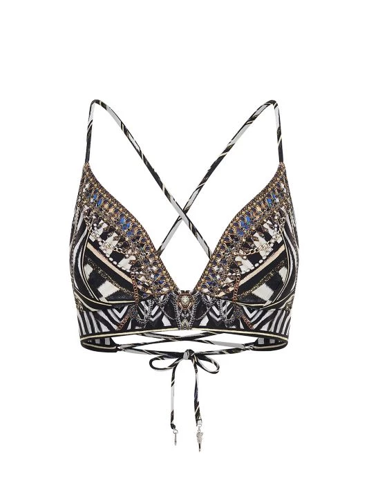 This CAMILLA bikini top is designed in a lace-up, triangle style with a bold print signature to the label.