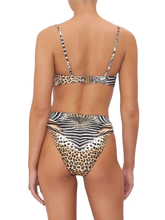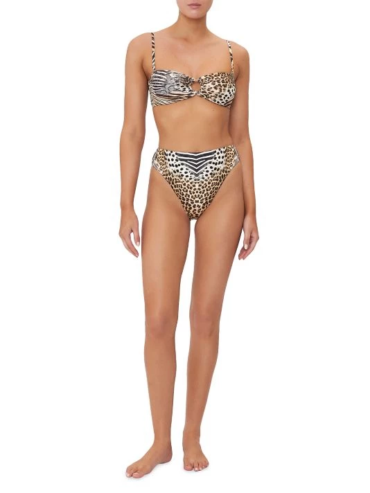 This leopard-print bandeau bikini top from CAMILLA features a gathered O-ring detail and crystal embellishments. Removable spaghetti straps finish the look.