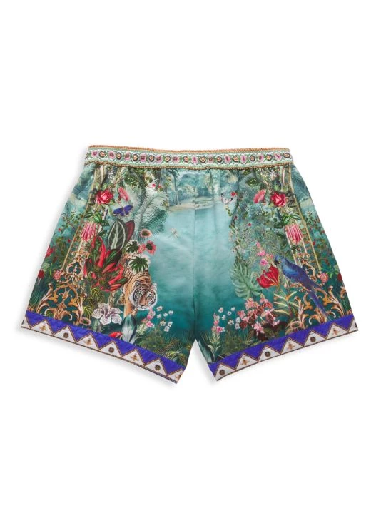 From The Party Like Collection. A vibrant jungle-print decorates these lightweight swim trunks.