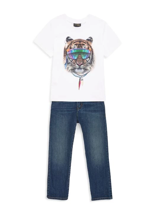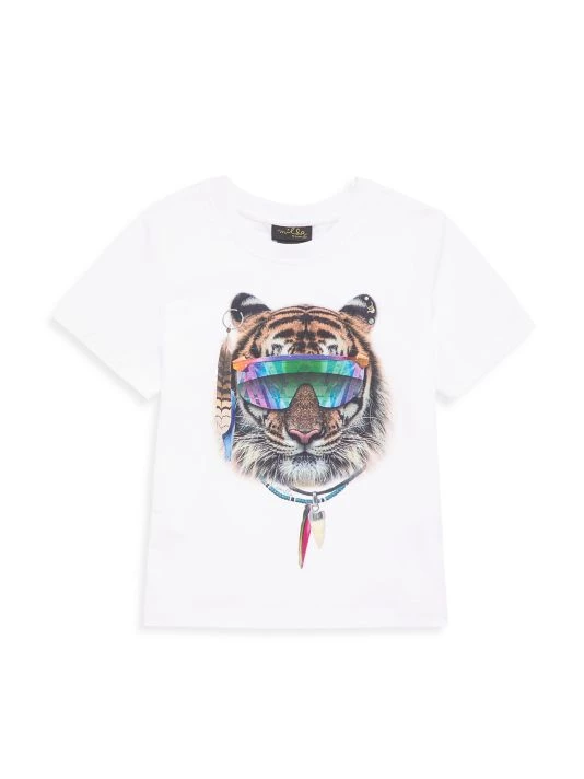 A stylish tiger portrait accents the chest of this casual T-shirt.