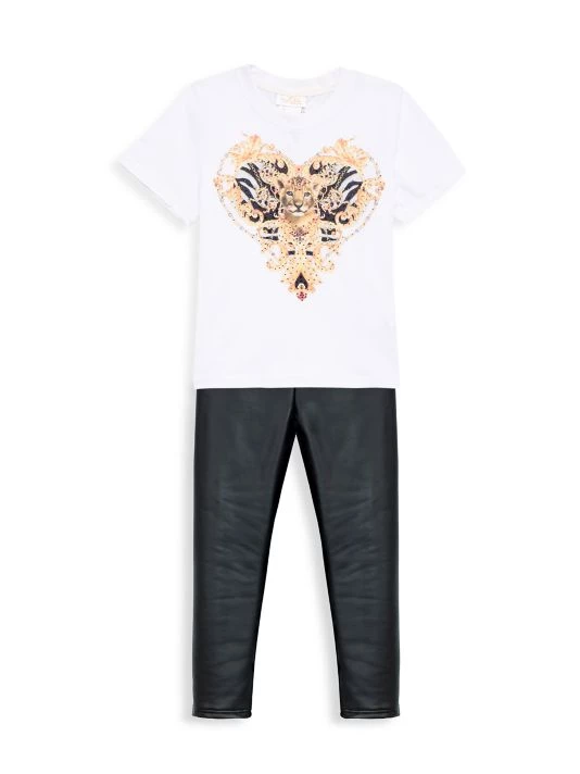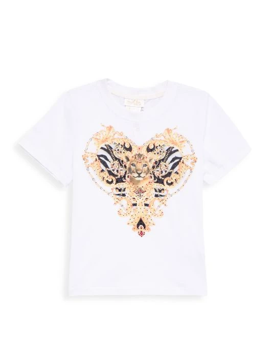From The Party Like Collection. This soft T-shirt showcases an embellished heart shape design accentuated by a zebra print and feline cub portrait at the chest.