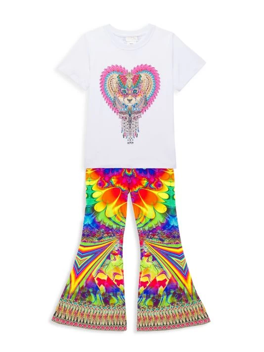 From The Party Like Collection. A colorful kaleidoscopic print covers these flared leggings.