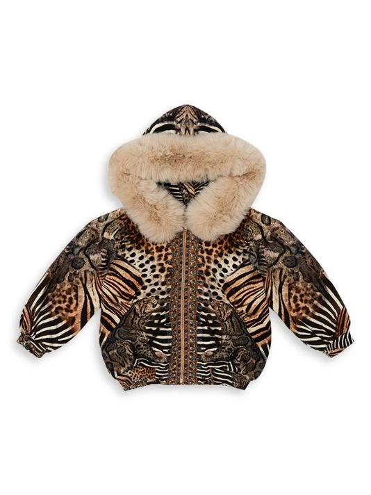Flaunting a bold multi-animal print, this hoodie is finished with a faux fur-lined hood.