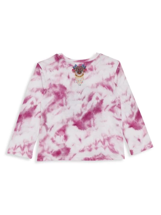 From the Runaway Royal Collection. Boldly designed, this long sleeve tee from Camilla combines a print of rhinestones and florals over a cheetah background.