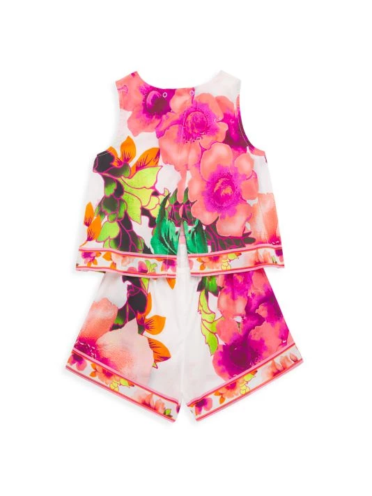 A layered effect at the waist adds style to this printed playsuit, covered with vibrant neon floral print.