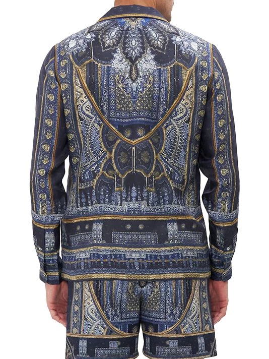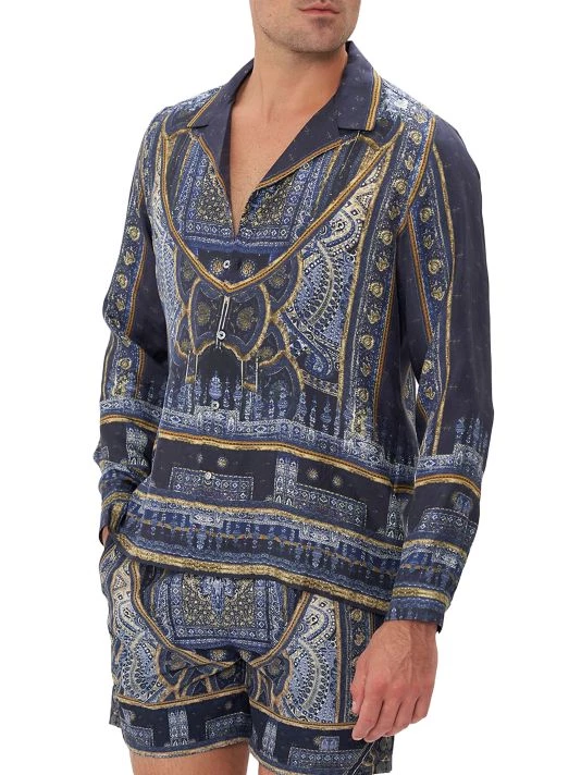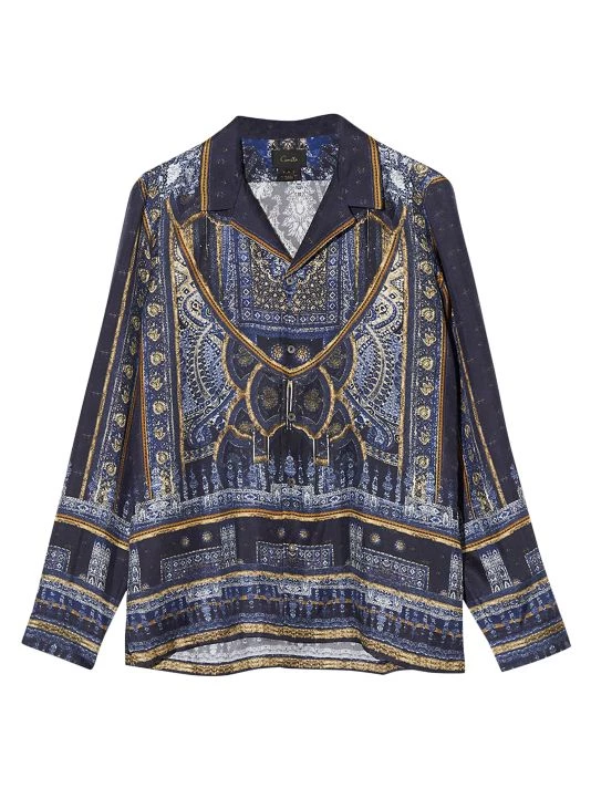 Cut from lightweight silk, Camilla’s camp-collar shirt features a bohemian allover print and a relaxed silhouette.