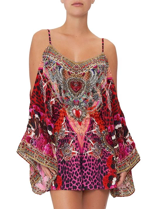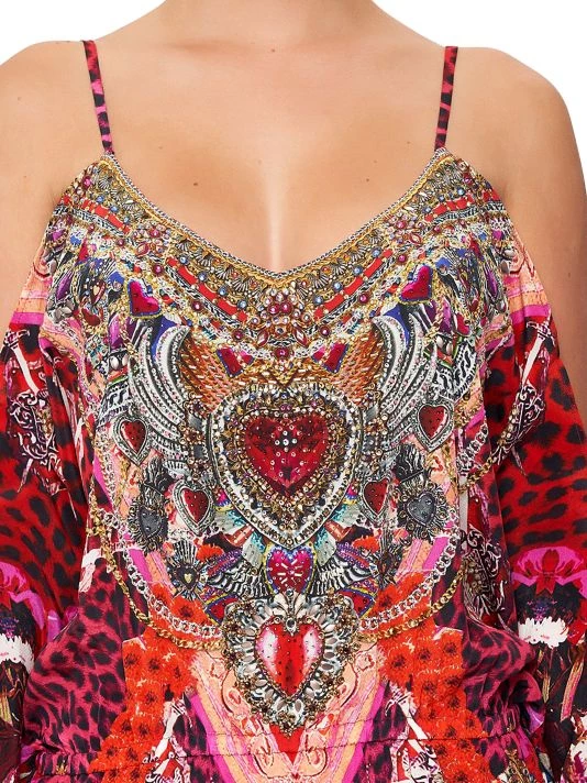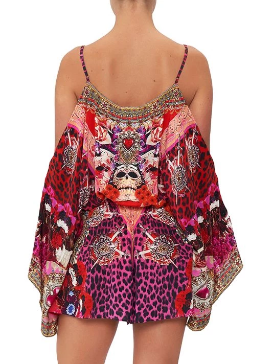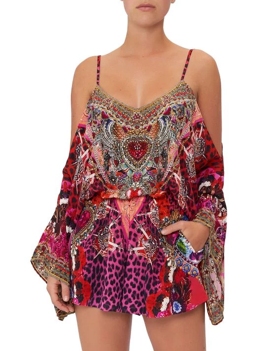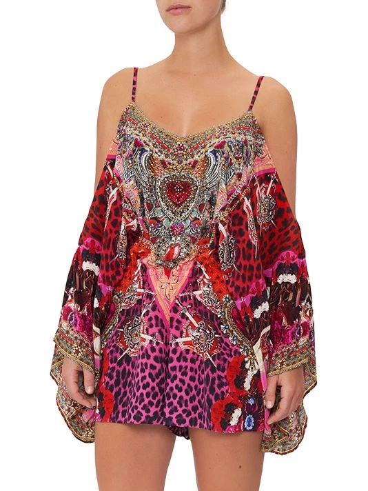 This bold cold-shoulder romper from CAMILLA is crafted of pure printed silk. Flowing bell sleeves and side on-seam pockets finish the look.