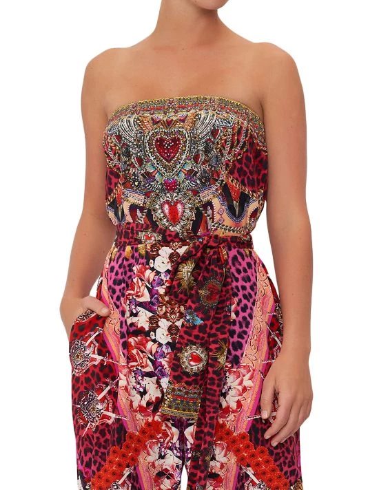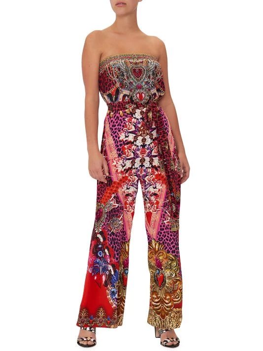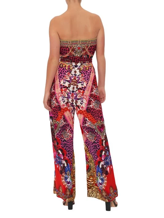 Crafted of pure silk, this CAMILLA jumpsuit features a bandeau neck and wide legs. A tie-waist detail finishes this bold printed style.
