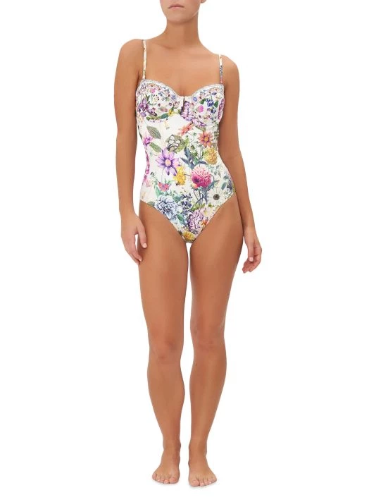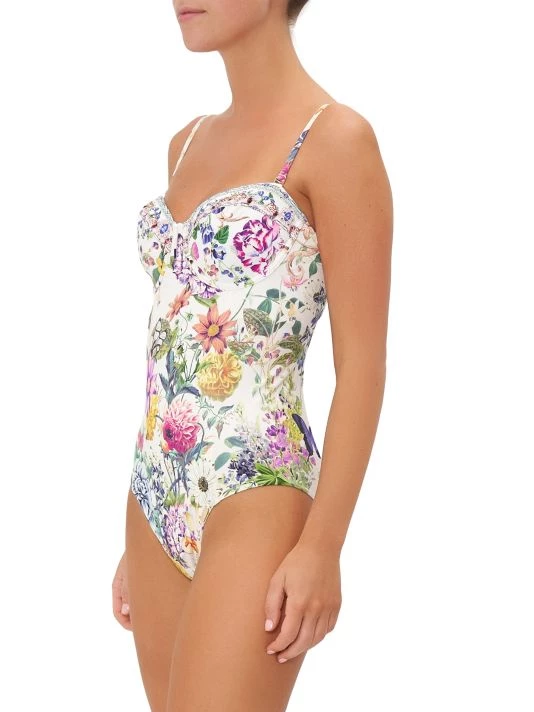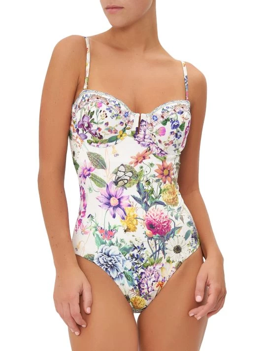 Designed with an underwire and U-shaped detailing for extra support, CAMILLA’s swimsuit is decorated in an eye-catching floral print.