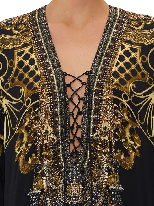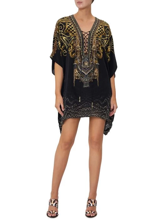 Crafted of silk with a signature print, this CAMILLA caftan is detailed with a lace-up neck.