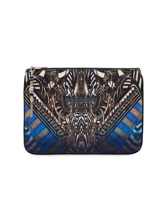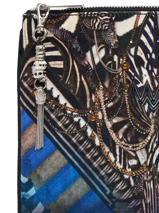 From the Knight of the Wild Collection. This CAMILLA clutch is crafted of canvas with a bold print signature to the label.