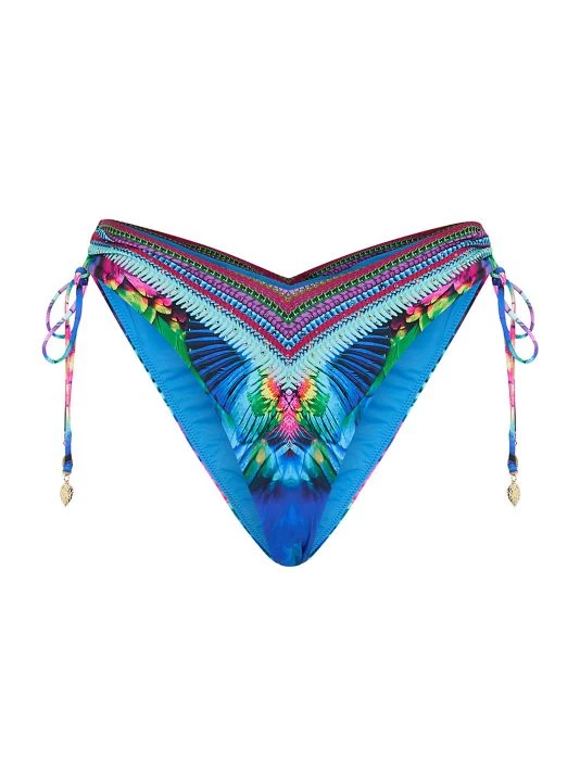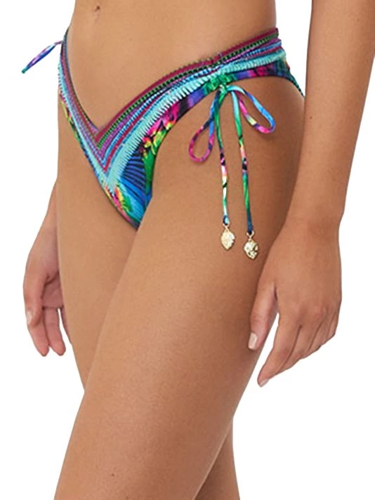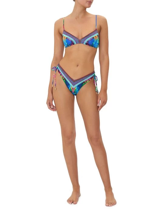 CAMILLA’s ruched bikini bottom boasts a tropical-inspired print. Cut in a high-leg silhouette, the plunging V-front offers sleek styling.