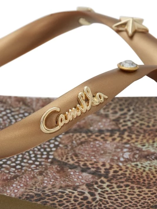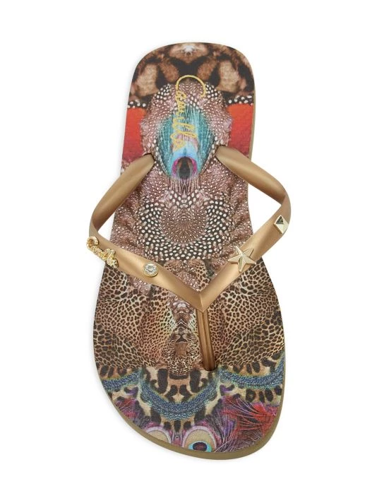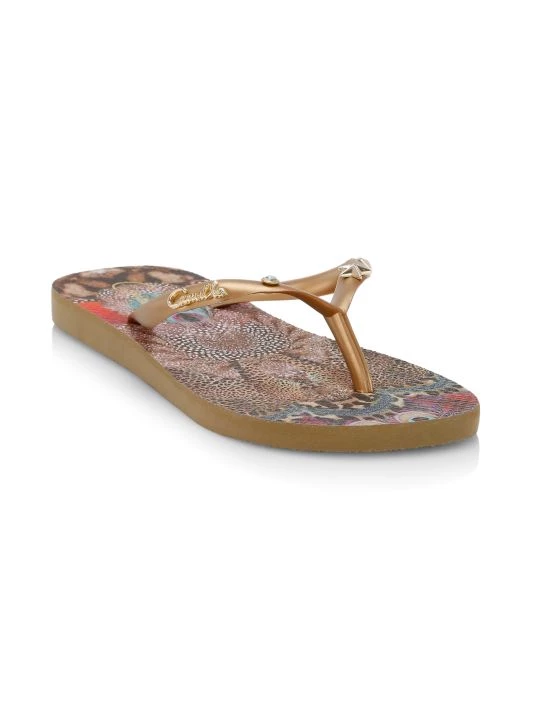 From the Xanadu Rising Collection. These CAMILLA flip flops are decorated with a signature print, featuring a brand monogram along the top.